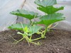 Past 3 years the smaller hoophouse has produced the bigger pumpkin than the plant grown inside the hoophouse for a much longer time...obviously the plant inside the bigger hoop gets larger faster....the other plant tends to be tougher and has outgrown its rival...this will be the last year I use the bigger hoophouse if the small one beats it again...