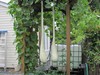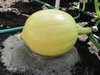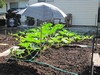 Lucky I was home, it started to rain so I threw a tarp on the 1126. This is the main vine that has grown out of the confines of the patch, and conveniently has swung over into the spent part of our Veggie garden beside the deck...how convenient.