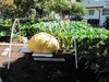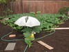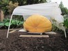 I opened up the rain/watering cover to give him a good view of what a realy good looking pumpkin looks like, and keep him out of my patch...