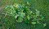 2154 Sperry '23: Tertiary Growth It seems that at this point in the season the weeds are actually tertiary vines. While the goal is to avoid walking through the plant as much as possible seeing the little "snake heads" of tertiary growth pop up here and here warrants going into the plant to remove them. These are always longer than they originally appear and this is a sign that the plant still has extra energy to give. In a structure it can be more difficult to access all areas of the plant so there is a bit of a judgment call when to justify "going in". This often means there is more than one that needs to be removed. Odds are that this extra growth is not taking that much away from the plant/pumpkin growth, but the main goal is to have new leaves be able to fill-in areas that may have some gaps based on leaf spacing, but the main reason for removal is to ensure the sunlight is able to directly come in contact with the original leaves. Even though these are older the connection to the actual pumpkin is the most efficient. The theory is that, older leaves while less efficient compared to a younger leaves in photosynthesis production, have a greater impact on the pumpkin growth since the travel distance to the pumpkin is less.