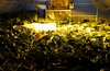 Supplemental Light to Adjust the Photoperiod With the reduced daylength the goal is to simulate the late June summer solstice which is the longest day of the year. This is also when the pumpkin plants are growing aggressively, and the pumpkin is starting to ramp up in growth as well. Reduced light can cause plant and pumpkin ripening (senescence) which can lead to reduced gains. By adding supplemental light this can "trick" the plant to behave more like it does in late June despite the calendar saying late September. It does not take much light since the plants actually determine the season by the hours of continuous darkness. A HPS (High Pressure Sodium) 750-watt light is used for this purpose since it generates good light coverage with a wide spread of 200+ PAR readings even with the light about 4ft above the canopy. The light comes on at 5am then off at 8am and then it comes back on at 6pm and off at 9pm. With the plant and leaves in good health they can take advantage of this extra bonus light.