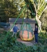 Day 5: F: 2154 Sperry '23 x M: 2670 Thompson '24 This shows the plant and set-up from a wider angle. Under the chair with the white sheet is the pumpkin with the small desk fan and sonicator to discourage mice and chipmunks from the area. Then there are two layers of mill fabric, �" plywood followed by two more layers of mill fabric. The reason for the double layer times two is to help make early adjustments easier by one person. Ideally the pumpkin is place in the perfect position, but rarely does this perfect positioning hold as the pumpkin grows. So, these help the pumpkin move with the least amount of physical force possible. What you will notice is a painted white piece of plywood behind the pumpkin set-up. This matches the plywood that is between the layers of mill fabric as the white paint helps reduce some of the moisture absorption. However, there is no mill fabric underneath or on top of this piece. The reason for this is to provide easy grower access with a reduce chance of slipping as two pieces of mill fabric can be very low friction. The hope is the pumpkin will grow onto this section and if needed mill fabric can be easily added, but at this point, safer grower access is preferred.