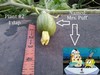 Melon on #2 plant, 6 dap. It was nearly 2.5" when it bloomed and laid down the same day it was pollinated. Was astonished how big it got the first 24 hrs so we named this one, 'Mr. Long Johns' It is also weird shaped with a huge belly but I'm not sure its a keeper just yet. If looking straight down on it, it appears to be only 2/3 developed lobes wise. Plant has over 200' of vine and another melon set on this plant. Will watch this one close to see how it grows. If any of your see a problem with how this one looks even body wise, please yell at me. Thanks