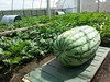 Fiona, showing off her buttresses. Mr. Hankey is the next melon to the left and Mrs. Puff is on the far east end of the screen house, 1st plant when you walk in from the east side.