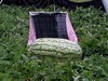 Getting Fiona use to the new 5' pumpkin tarp that arrived yesterday.