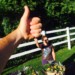 She came right up to me today and started making cat sounds and hopping side to side on the wind fence...anybody see buddy the elf (wil farrel) when he tried to hug the raccoon?...yea that was me...I thought she wanted to play so I was making cat sounds back to her and holding my finger out in case she wanted a place to land...nah... One of her babies flew the nest a little early and I was almost stepping on it...lol...she attacked...