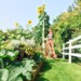 Here's lambchop tying up the sunflower...ended up with multiple heads...I dunno if there's a contest for them in saratoga but she won't let me pull it out anyway...