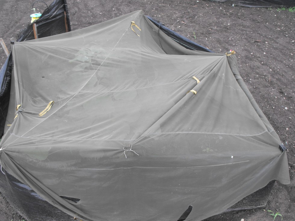 Very Strong storms last night beging at about 10:15, one right after another. 401 Buck (1872 Wallace x 2009 Wallace)This is the best thing money can buy in my book for protecting individual young plants period. Military misquito netting. The type used over a single military style bunk or cot. I think I payed 24 bucks free shipping for 6 of these on ebay 3 years ago and not one plant scratched by hail $ 70+ mph winds from about 7 different storms last night. 1 plant had other protection..it got beat to heck but will survive.