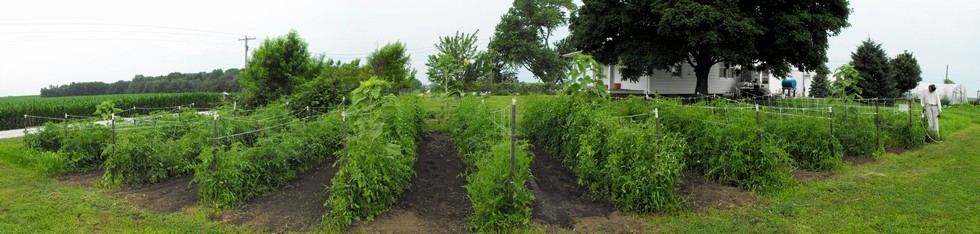 The east side Tomato patch, 200+ plants, they are loaded just wish they would start turning. Temps in the lower 60's again this morning..that doesn't help any.