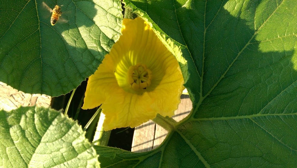 Gorgeous 5 lober on BiZ's Jutras greenie....look at all that pollen on the bee....