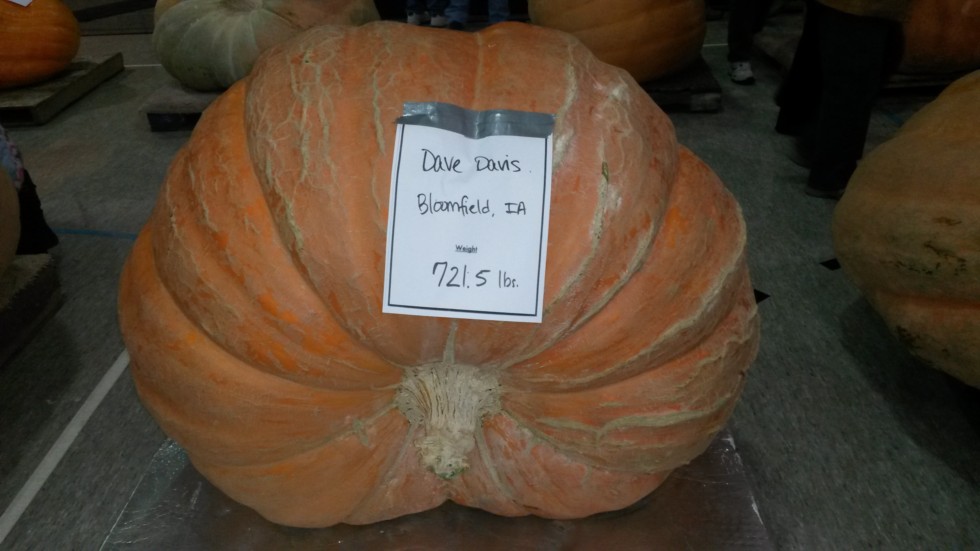 My 1766.5 Debacco is now the 721.5 Davis. Just a touch light. Thanks Matt for the seeds. Was glad to have a pumpkin for the Anamosa weigh off. There was some excellent pumpkins there today and records were falling everywhere in all categories. Mr. Norlin heads up a super weigh off site and his volunteers that help make this a wonderful event. All these individuals should be commended. 5 states had competitors there today and I am impressed on how many good growers were there. All good people. The forklift was really worked today.