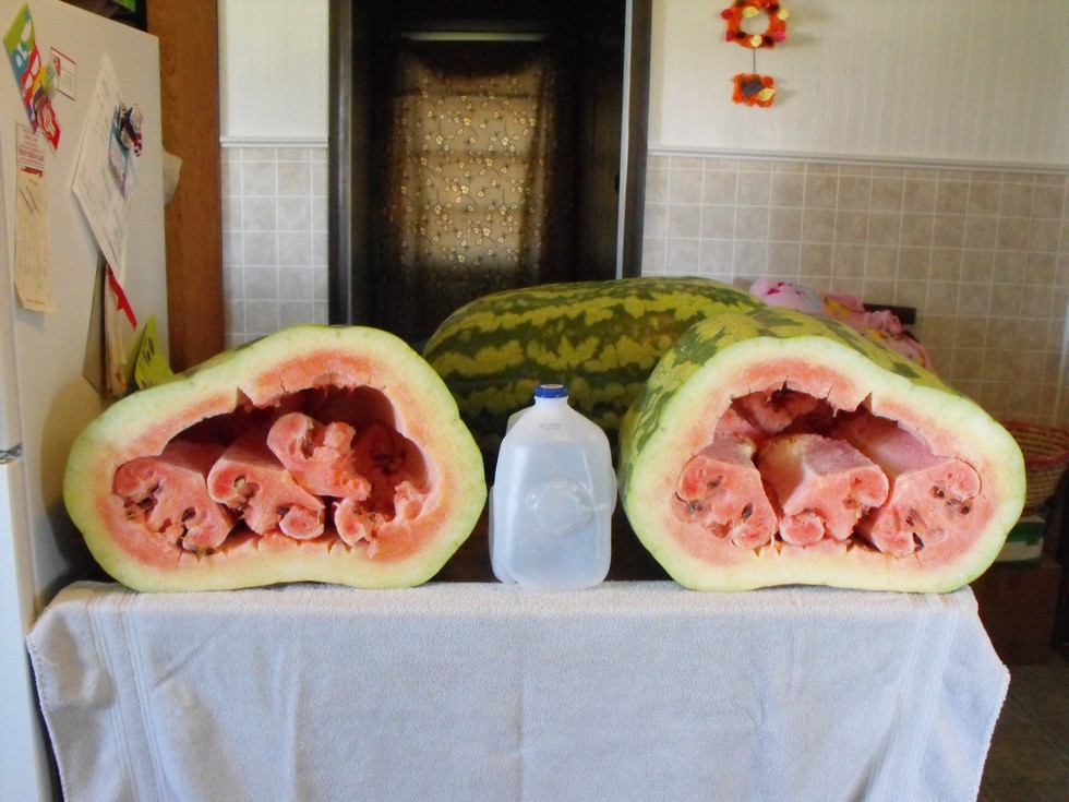 297 Kent, Nothin but Air,lol. Still should be good seeds. Crosses are 297 Kent x 291 Kent & 291 Kent x 297 Kent. I plan on planting both next season...Plenty of seeds. I was very inconsistant with the melon watering this season.