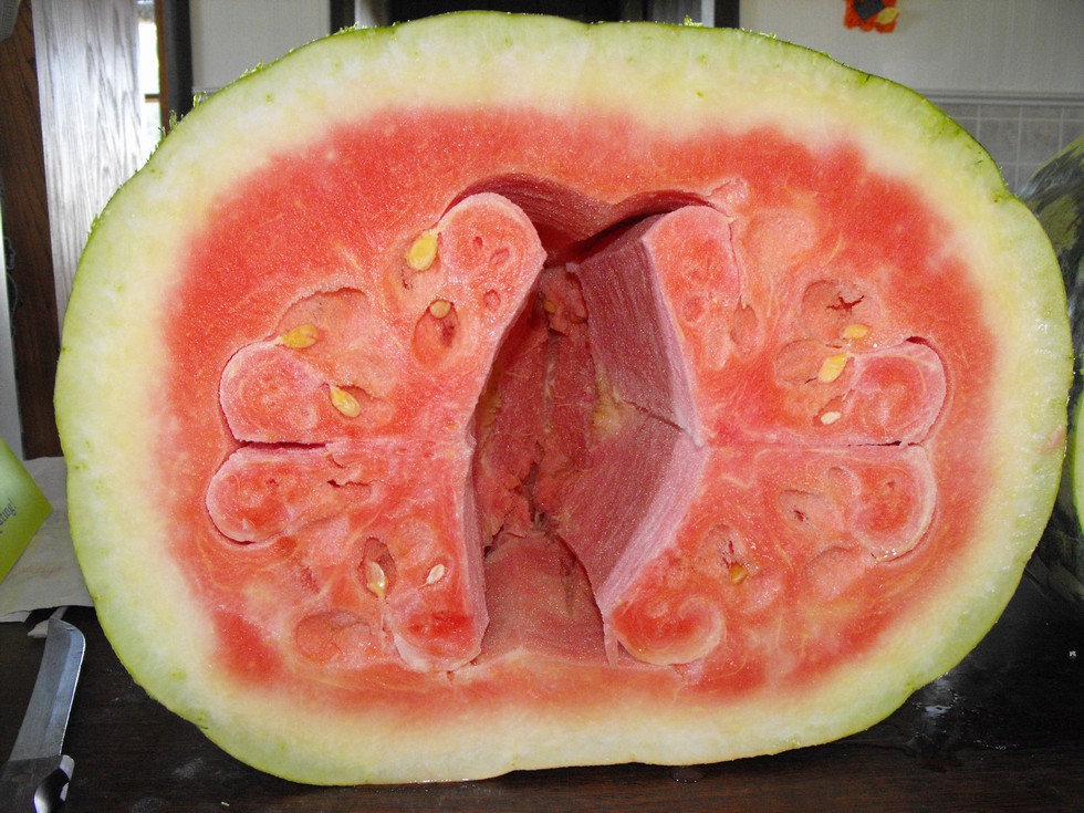 The 291 Kent x 297 Kent official "105 J Young melon. Second place for the most air in a melon,lol. Still, after talking with a couple growers at Anamosa the genitcs of both the 297 x 291 and 291 x 297 crosses should be good. The air in both melons was due to the patches being too far away from a water source. Even though we got record rain fall at times the watering was way too inconsistant. Lesson learned and so I am putting melons and bushel gourds next season in my east patch which is approx 295 ft x 40 ft now. I don't see myself raising market tomatoes next season due to health factors and a friend of mine dropped of an axle setup for a double barrel rain barrel set up that I can leave at my barns rain gutters and easily move with the tractor to different patches for watering. Sorta like a military water buffalo. Good winter project. I'll tell ya's, I've gottin very interested in these melons... I've gotta start gettin Tee Shirts printed up,lol.
