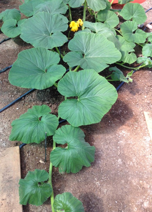 1104 Young '14 is starting to get long and it's developing secondaries. After a clumsy start it seems to be growing nicely. I just hope that I can keep the 1513 Sherwood from growing into it. If I do that, then I will need to figure out what to do with the 1754 Daletas '14 growing at the east end of the big tunnel. Not enough room for both the 1104 and 1754. I find the flagging on the 1104 Young leaves to be interesting. Noticed the same thing with Dave Smith's 1622 Young '09. Those plants just don't like Arizona's mid-day sun -- even in Jan, Feb, and March. I need to add some more shade to control the amount of sunlight that the plant gets. I plan to put the 60 percent shade cloth over the top of the tunnel tomorrow.