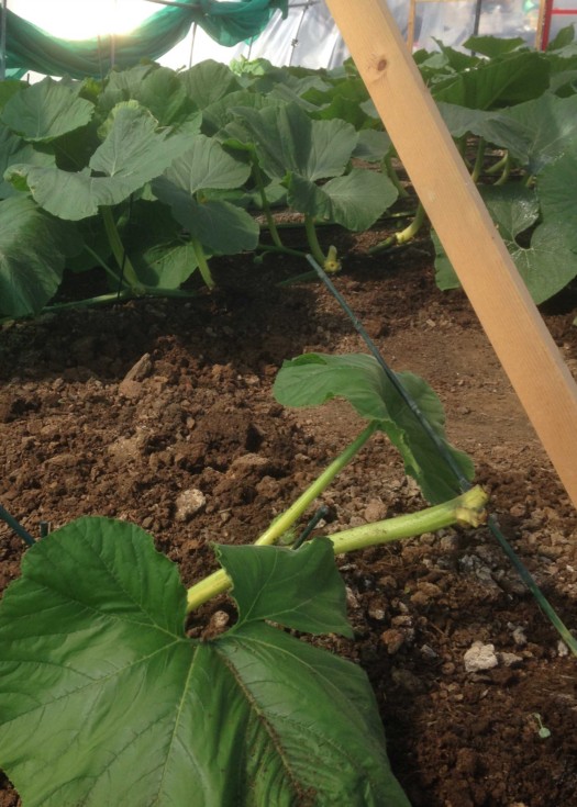 Had a great time in Wilkes-Barre. So glad I had a chance to meet so many great people. Came home to reality. My first fertile pumpkin on the 1513 Sherwood aborted while I was gone. AND, the main grew into the side of a bucket I had in the tunnel - and snapped. I still have two fertile pumpkins on the main. Moved the main to give both pumpkins a better growing area. Buried the main after I was through. The second pumpkin is a 15-feet from the stump, and the third pumpkin is 19-feet from the stump. You can see where I cut the first pumpkin near the center of the picture. Had to remove the 1104 Young I had in the middle of the big tunnel. Needed the space to take care of the Sherwood. Also, the 1754 Daletas is coming fast from the other end of the tunnel and needed room as well.