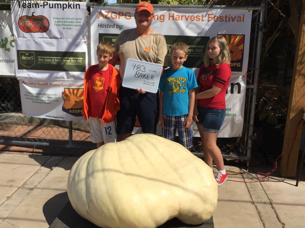 Most of us were surprised that the 483 Baker (1666 Holland 2013 X 1622 Young 2009) didn't went the weigh-off. It was 9 percent light. The rest were about 2 percent light. Arizona's lack of humidity may be responsible for some of the lost weight. Still, it taped bigger than it showed. I was glad the grandchildren were there. Not much that I do impresses them. I was hoping the giant pumpkins would give me some credibility. I was competing with Comicon, so they were primed to go see their super-heros.
