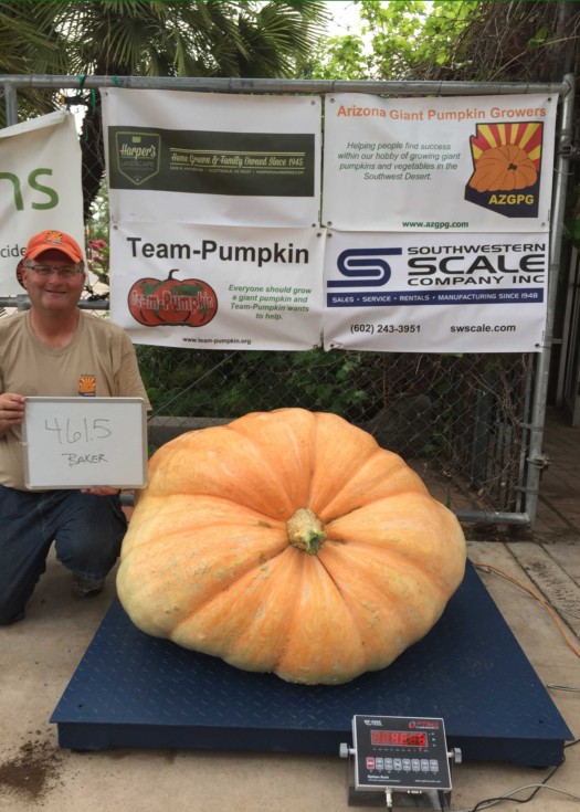 Set up the AZGPG's new floor scale and weighed my last pumpkin for the season. We've decided to have a Virtual Weigh-Off because we have a number of people who started late (well, they started using the traditional last frost dates). Plus, the start dates are later in Las Vegas, Northern Arizona, and New Mexico. We'll just take the scale with us and get everybody a certified weight. There just aren't any options in our part of the country. Anyway, the 461.5 Baker (1754 Daletas X 1622 Young) weighed in 3 percent heavy. After being disappointed that the 483 came in 9 percent light, I was down-right thrilled. It didn't break my new record, but it was a great way to end the season.