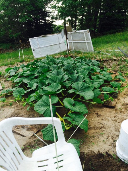 Earlier start larger plant this year. Plants are not as happy as could be. Looks like manganese deficiency. Best guess.