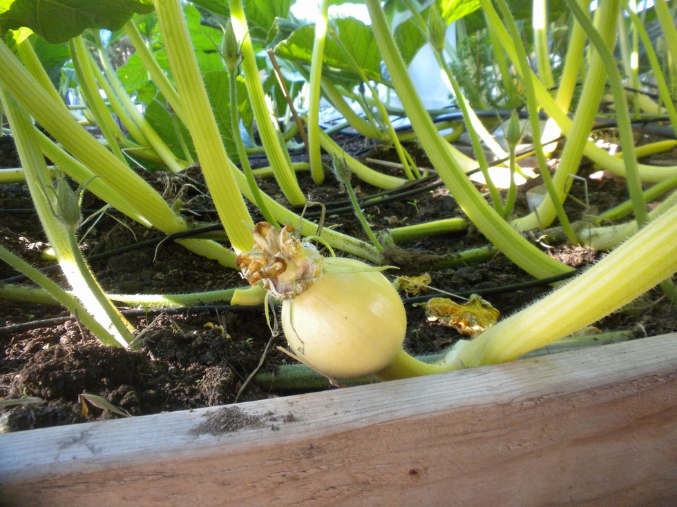 This one is growing on the first side vine in the tray over the driveway. Not the perfect position but I could make it work if I had to. This one was pollinated on 6-17.