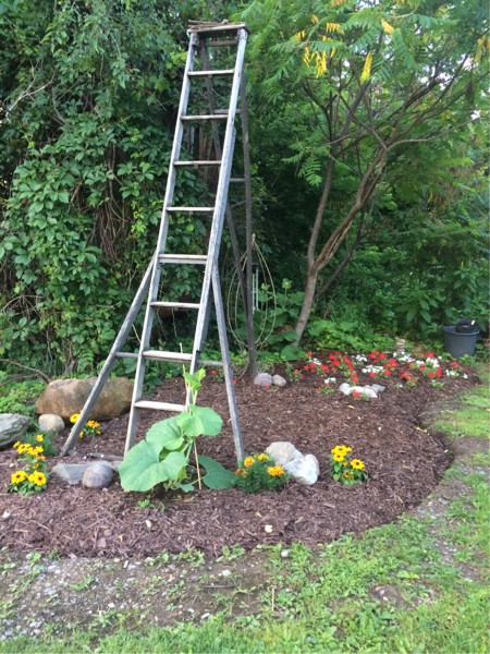 Well, it's been a couple long weeks with work and garden chores ...here's a quick catch up...first time with the long gourds..I'm not sure what seed ..it's been slow to start but I think it was lonely so I planted some company...