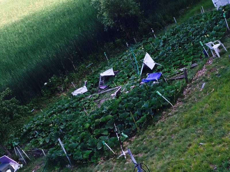 It appears at least a couple of the 700 plants went into pumpkin mode put some meat into the main pumpkin and started slowing down on the vine growth. Growing these genetics for three seasons these plants seem to really show when they start putting juice in the pumpkins. Or it could just be on the squash bug juice. Lol. Time always tells