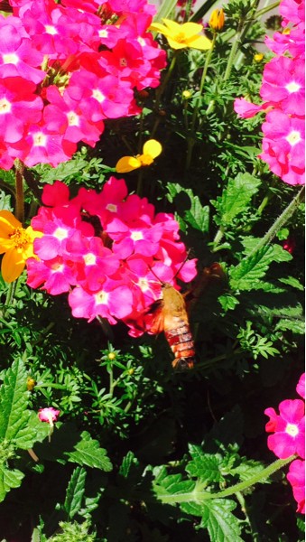 Visitor to the patch today... It's a humming bird moth...they are rare to see so I'm told...I know this because I saw one last year and thought it was a drunk baby hummingbird and tried to catch it...it was a bug...maybe I was drunk...anyway, very cool little creature