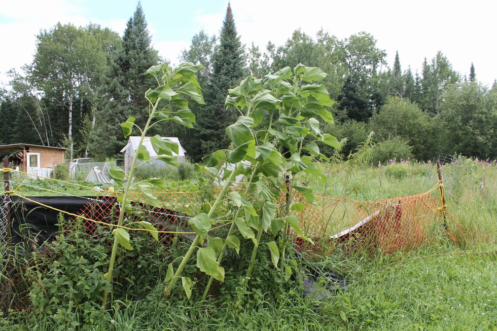 Sunflowers have been taking a beating last few days with all the wind.Hanging in there. About 8'