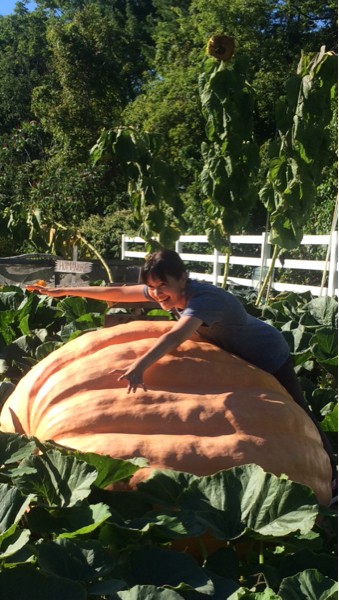 We had a Patch visitor from Japan today....she gardens in Japan but I'm pretty sure this was her first time seeing an Atlantic giant..I think "try to be gentle " got a little lost in translation but no harm no foul..she got such a kick out of seeing these...that's pretty much how I look every morning too...