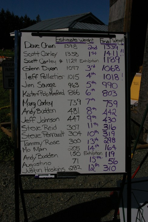 Leaderboard from Krause Berry Farms today...what a great turnout we had 20 pumpkins and 2 squash...