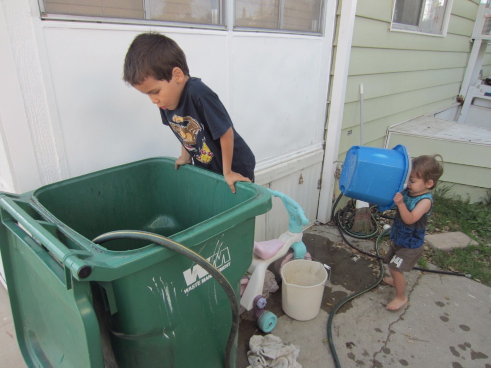 Our water system, aka waste management! lol And our waterer, Joshua! He will water by bucket except two days a week for drip, all we are allowed to do.