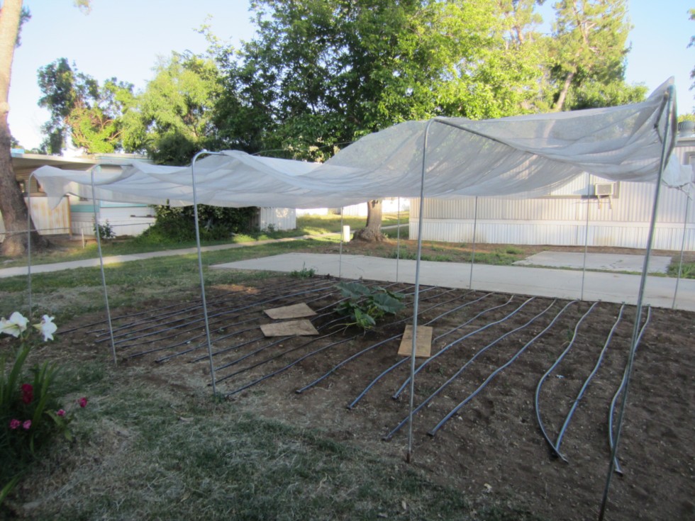 It has been a learning experience for me with the kids. I tend to take the plant too serious with my competitive nature! lol Joshua and Andrew pretty much run over the patch daily so the dirt is compacting, they also burst a drip line and sliced it :-D The shade structure had a triple failure in 3 days. First time was my fault, second and third times were just bizarre. Let's just say the supports failed and fell due to wind and probably kids. I gotta be honest, it is a miracle of the Good Lord that plant is in one piece. The supports that fell, fell at weird angles where the plant should have been crushed twice and both times, I don't know how, it some how missed the plant, and it was close. lol Anyway, lastly, never ever use miracle grow seed starting mix. Tried it via Vince's thoughts (thanks Vince lol), it killed 2 of my 3 giant tomato plants as seedlings, and ruined my zuchini seed that sprouted, and I believe took out the 2008 neptune after it germed. Roots seem to cook. Our last remaining giant tomato was taken from us by hail two weeks ago, snapped the little stem right off. Chalk one up for el nino. But the 1491 survived the hail. Been interesting and we will see what adventure comes next. Btw, never had a shade cloth structure fail on me in all my years growing and had 3 in 3 days. :-D