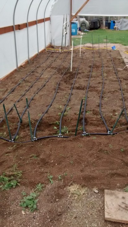 melon patch almost ready, soil warming cables buried and watering system setup.