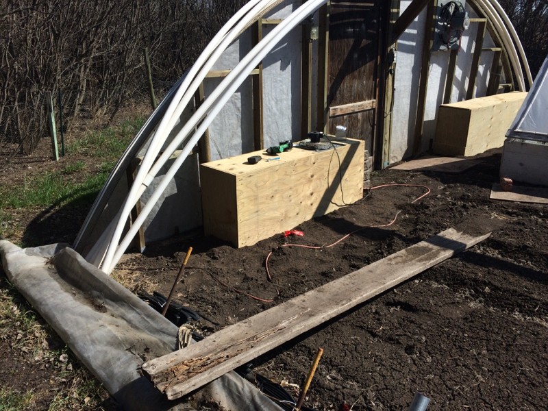 Well, it works. Air coming out the other end of the tubes is 15�F cooler. Not bad considering it isn't 60� F outside right now. That should warm up my soil once the greenhouse is up. I only have a fan on one side in this pic. I have a bigger furnace fan for the other side. There is a low rumble sound resembling a train that comes with it though....