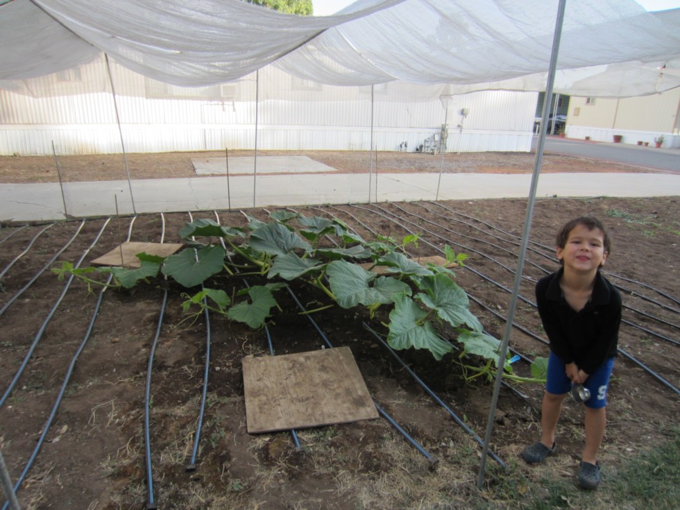 Joshua and his 1491 werner. Weather has been cool lately. Plant is well except got blown around by some windy days and some leaves got bent up pretty bad by the stump. Male flowers on plant are slow to develop, the first few by the stump withered and died, which I have ever seen before in a non heat environment. Male flowers are growing as vine grows, but I was hoping for an early fruit set, no other friends have plants yet so I am all alone, do or die with my flowers, and there aren't very many of them yet.