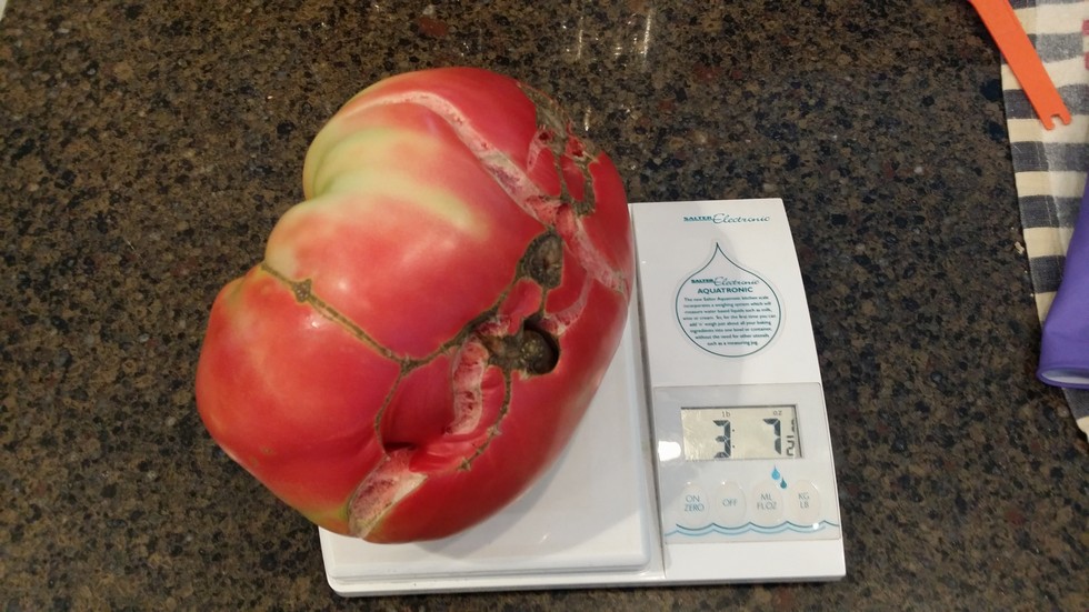 Second tomato of the year from the second 4.02 Finders plant. Translates to about 3.47. No seeds to be saved.