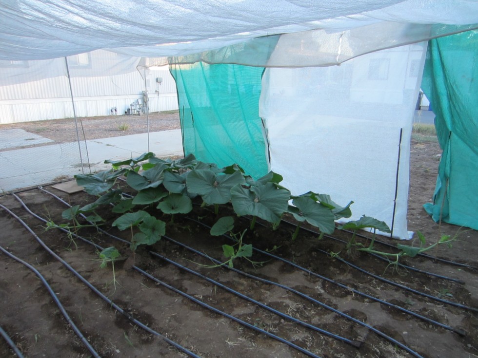 I started plant in middle of patch, will grow a flag pattern one way, the shade cloth is covering the edge or the plant would burn in the afternoon as it goes west