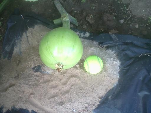 1533 Kline squash x self, 10 dap, 19.5 inches cc, 11 feet out on side vine, its small, but, alive,, see if i can get it to grow n stay alive to wo,,