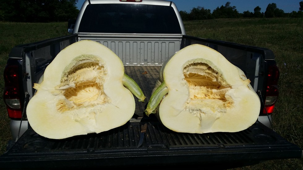 The 231 was solid at the blossom and went 12% heavy. They were weighed at a farmers co-op. I don't have a chart to compare the 49.5 to. 231 is (548.5 Cantrell 15 x 694 Cantrell 15) and should produce a squash. 49.5 is (548.5 Cantrell 15 x 1047 Barlow 15) with a 50% chance of going green. The plant was about 300 square feet and had virtually no care and no soil test. Just a bit of nitrogen early on.