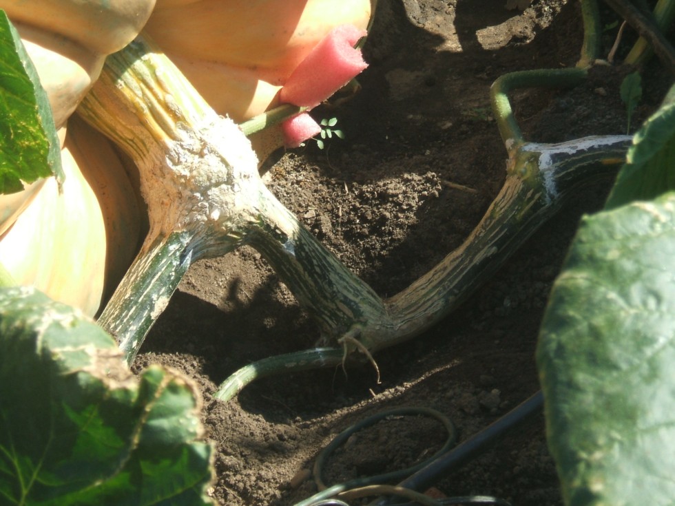 Kink forming, I guess I should have pulled the pumpkin out further when it was little but when I noticed it the stem was already angled down so I figured it would snap, its very loose so it should be ok.