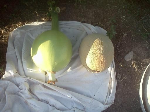 1060 Jarvis.. decided to pollinate 1 on a side vine about 18 feet out,, the days after the big one blew,, for a halloween carver, dap 10,, bigger than the cantalope,,