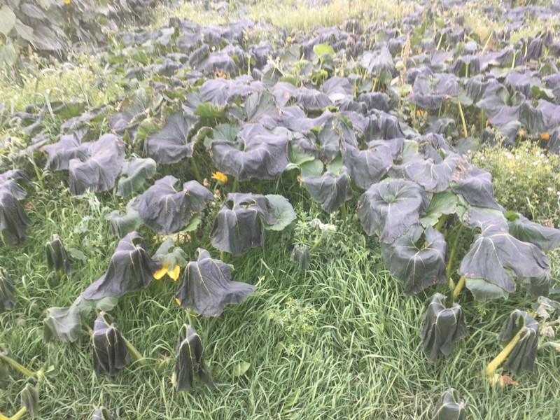 Frost damage. This is the way most of the outside plants look. Sort of saved the FP plants in the main garden by running sprinklers. The 2185 plant has lost about 70% of the outside leaves. This is a little early, It's usually between the 9th and 13th. They keep telling me climate change exists but it's not happening here yet.