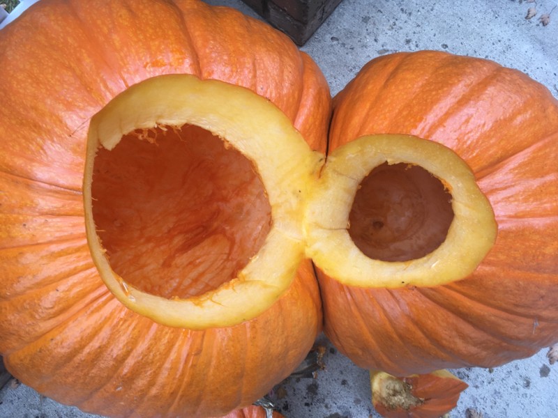 Solid between. It's like two separate pumpkins. 3" thick at least.