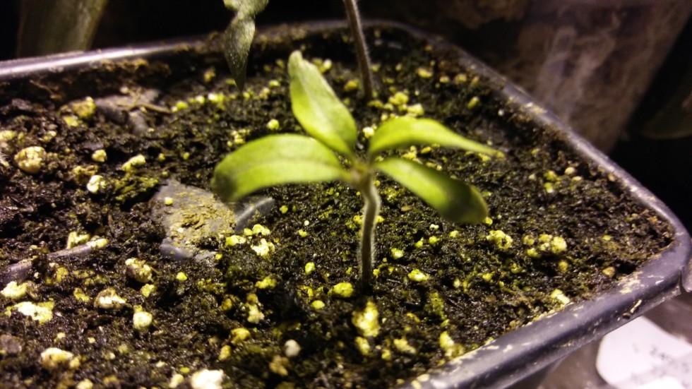 Here is something new, a 4 leaf tomato plant !!! Cant tell if it will be a ribbon vine or a double stem yet? It may just be a singe stem i should know in a few days. This is just a burpee supersteak tomato not a compitition plant.