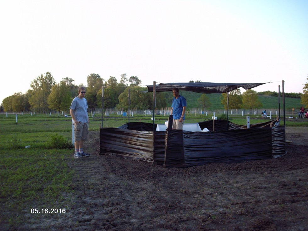 Me and my brother(Benjamin on the left) helped me put up my shade cloth eariler back on Mother's Day. The cloth is tied to six 7' metal stakes with attached wooden stakes at the top of each to make the stakes taller.