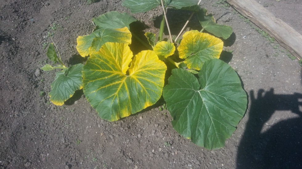 I have never seen the leaves turn so yellow before ??? The plant and leaves look healthy but very deep yellow color. I hope that this means a howard dill orange pumpkin !!! (0: