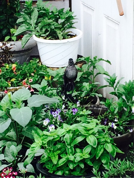 Another gray day in the gardens ...this is my catbird friend...there's a few pair of them nesting in the hedgerow behind the greenhouse...very friendly birds with a lot of character and they are master bug hunters in the patch...