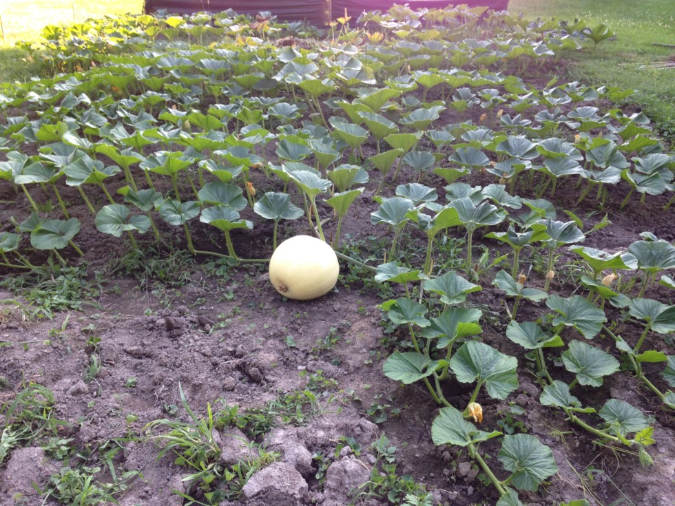 Only one left growing on the 1844 Rose. It is an "open" pollination that is 12 days old. She is perfectly positioned on the main vine at 21 feet and I am giving her all the TLC I can. OTT is 102".