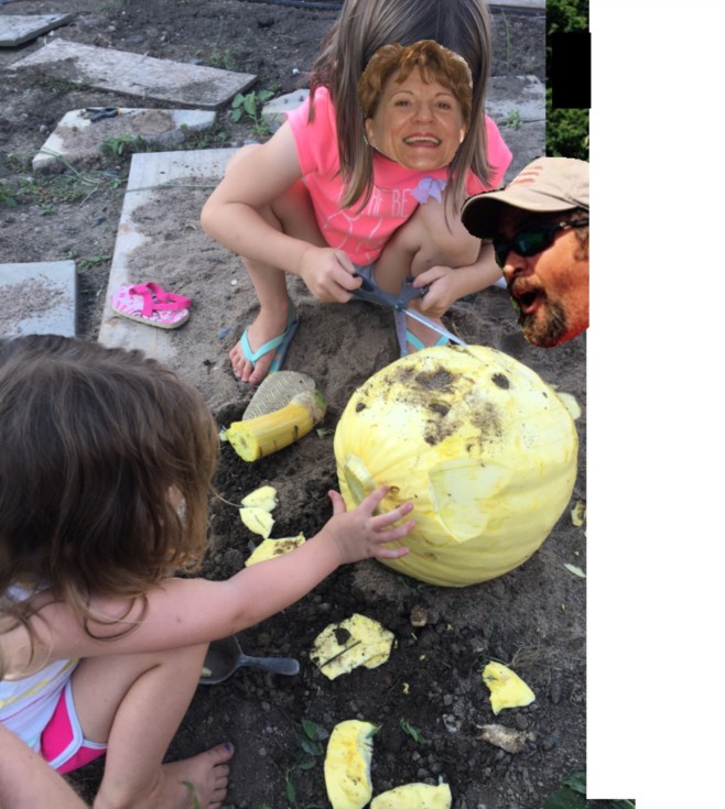 Such a fun day....I even let them play with a cull from the patch. Careful with those scissors Nana! Porkchop look at the dam camera!