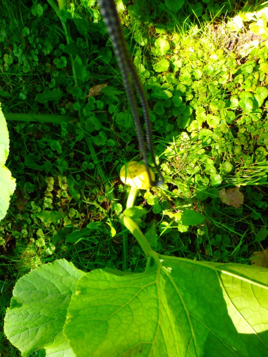 Porcelain Doll Set #3 on side vine of main #1. At the beginning of this month I was starting to think that I wasn't going to get any pumpkins from this plant because female flowers weren't coming out and setting. Now I have 3 sets going !.