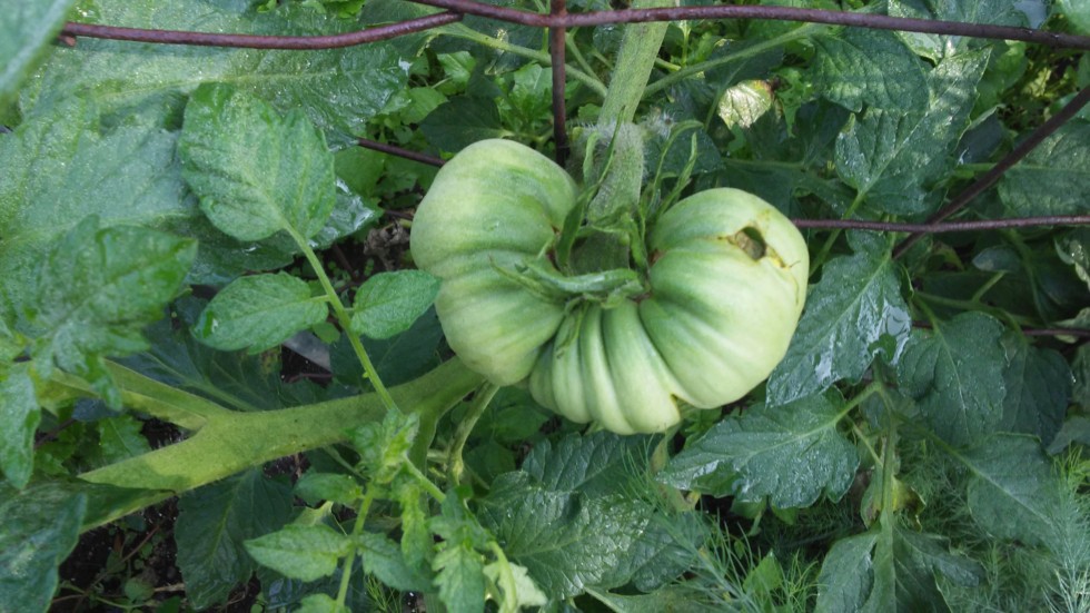 Now this is on a megamuutt plant. I have 4 megamutt plants with tomatoes like this on late season plants, but i couldn't get these kind of megablooms on my early plantings. The early plantings just wonted to put out singles and doubles. Kind of odd to see that. The same thing with my domingos, They seem to do better in the late season.